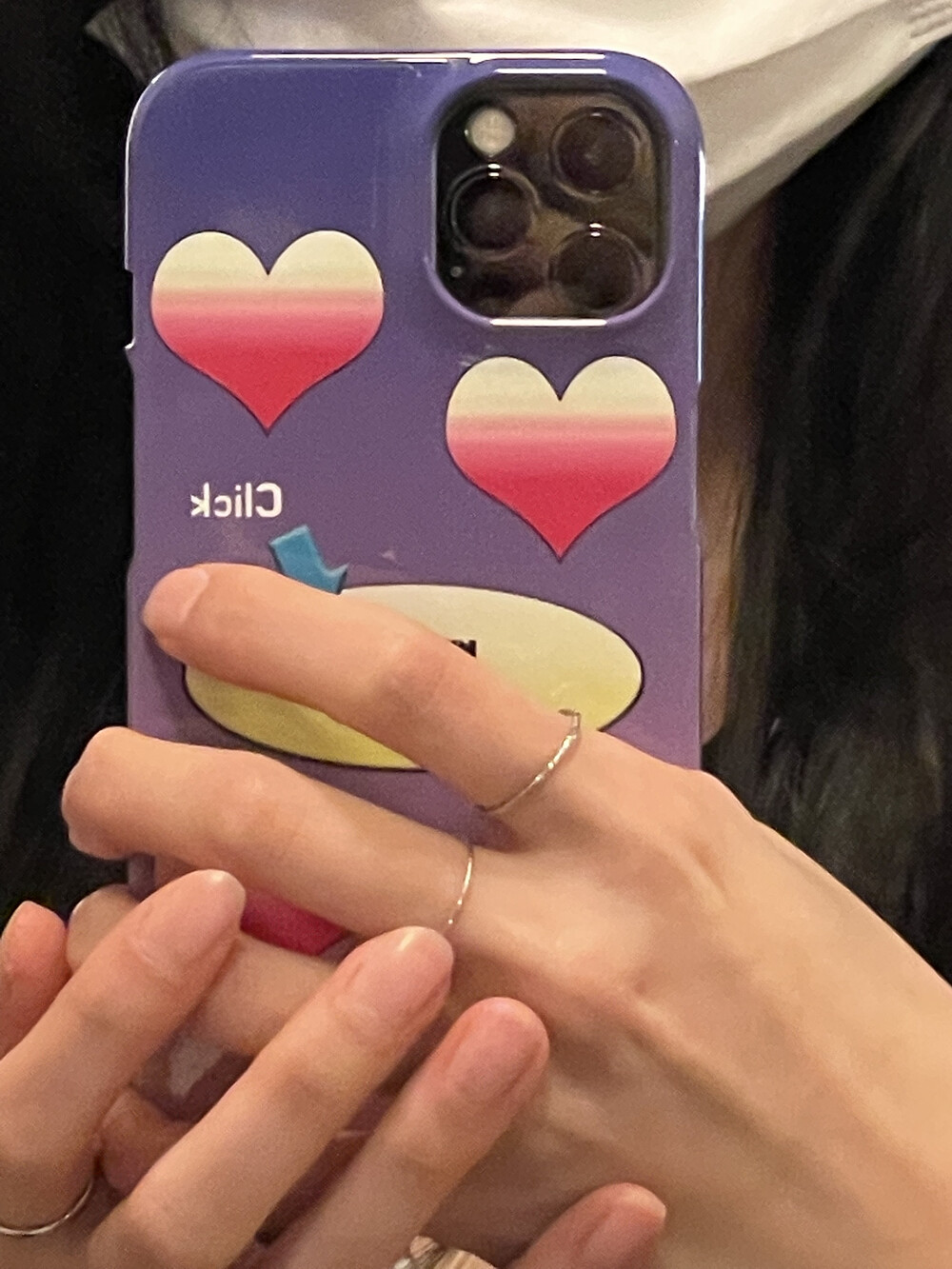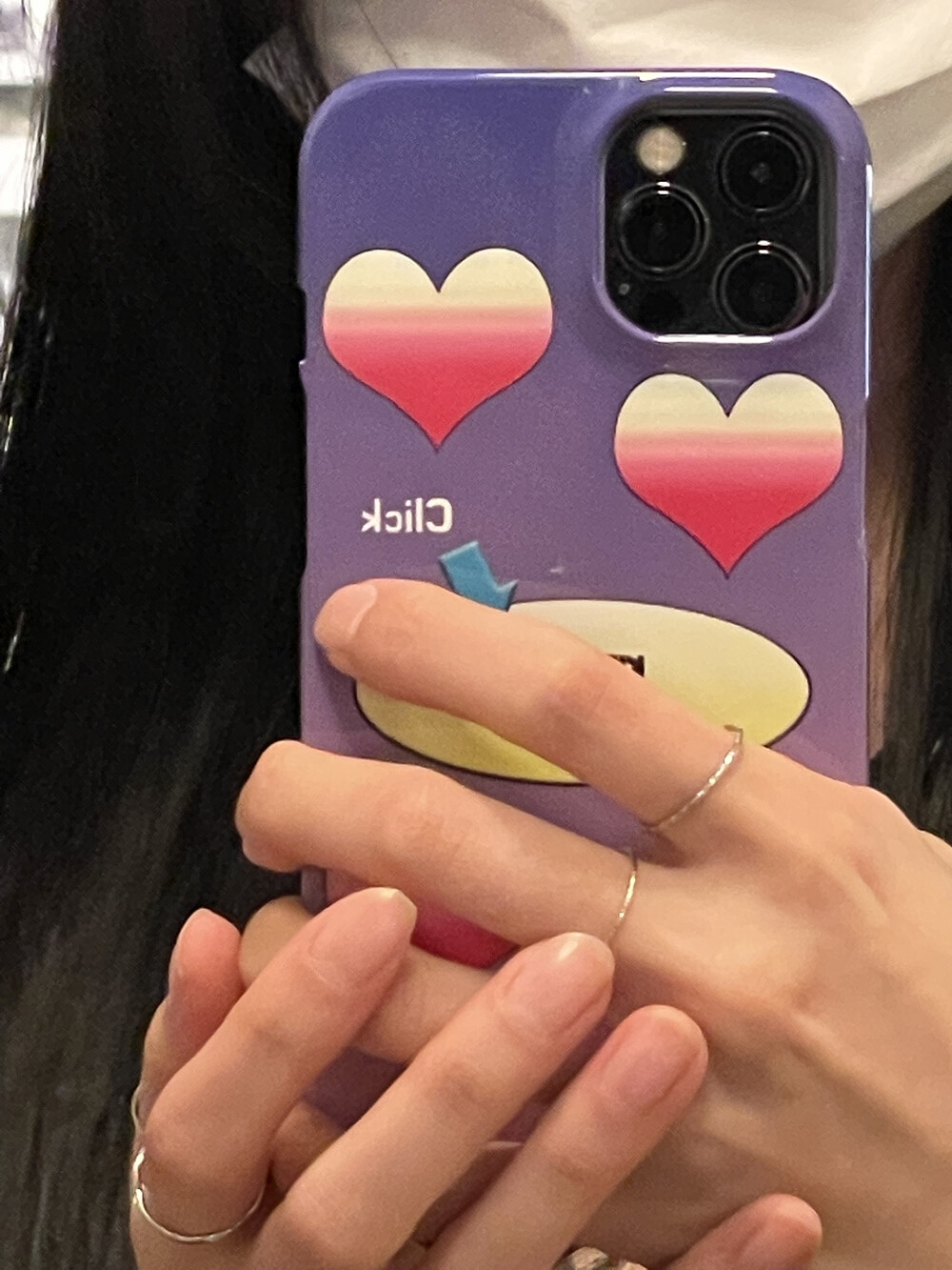 귀어우면서도 y2k감성이 느껴져서 저도 요즘 이 하트 폰 케이스를 착용하고 있습니다:)